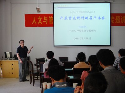 胡鸿主任在总结讲话中要求大家认真体会汪教授的“科研是生活和生命的本身”的含义,希望大家从整个讲座中受到启发,并将汪教授的特色科研的体会作指导,深入思考,应用到自己的研究领域,从而不断提高人文与管理系教师的科研素养和水平。