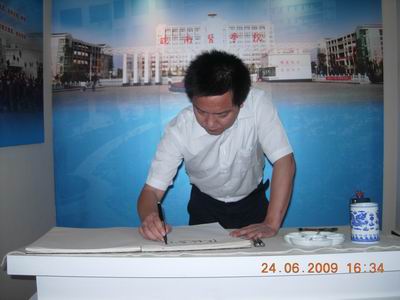 祁国阳一行在李朝品副院长的陪同下兴致勃勃地参观了学校校史馆,并对我校建校以来取得的成就连连称赞。参观结束,祁国阳院长提笔留下“院校合作、教学相长、科学发展、携手未来”这十六个苍劲有力的大字。