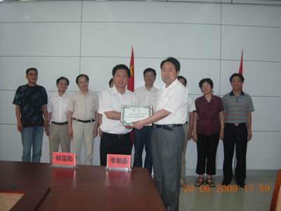 学校聘请祁国阳院长为我校卫生事业管理学兼职教授,李朝品副院长为祁国阳院长颁发了聘用证书。