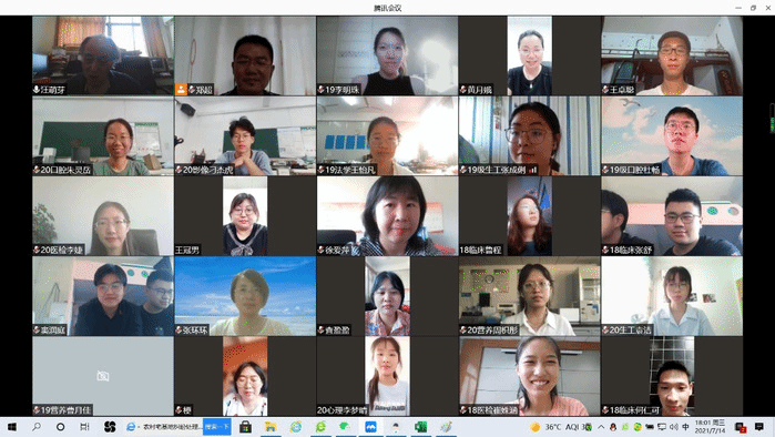7月14日,kaiyun登录中国入口登录“启明星”小组创新型人才培养中心通过腾讯会议在线方式,召开了2021年“启明星”小组成员新申报项目开题论证会议,会议由生物学一流学科带头人郑超教授主持,“启明星”小组指导教师,全体在校的“启明星”小组成员参加会议。2021年“启明星”小组取得成员资格的19位成员参加会议,他们分别来自人文与管理、公共卫生、麻醉、口腔、法医、医学影像、检验、临床医学等学院的10个专业。