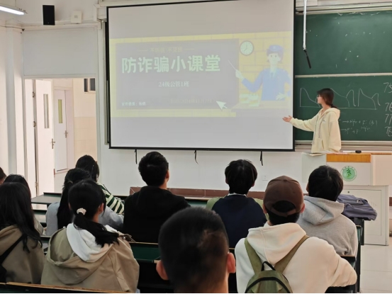 反诈宣传进班级,安全知识入人心。为加强广大学生对电信网络诈骗的防范意识,提升学生的防骗反诈能力,学院各班级组织开展了“反诈宣传进班级,安全知识入人心”主题宣传活动。各班针对学生群体特点,结合真实案例和翔实数据,深入浅出地剖析了常见电信网络诈骗的类型、特点、手段及防范措施,让同学们深刻认识到诈骗的危害和手段,提高“不被骗、不参骗”的意识和能力。