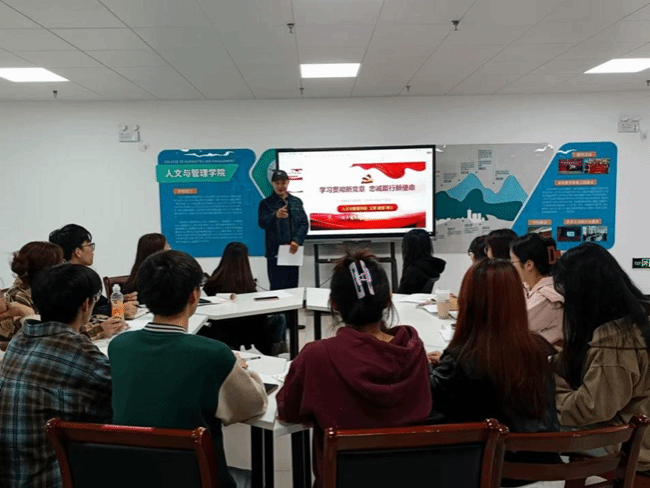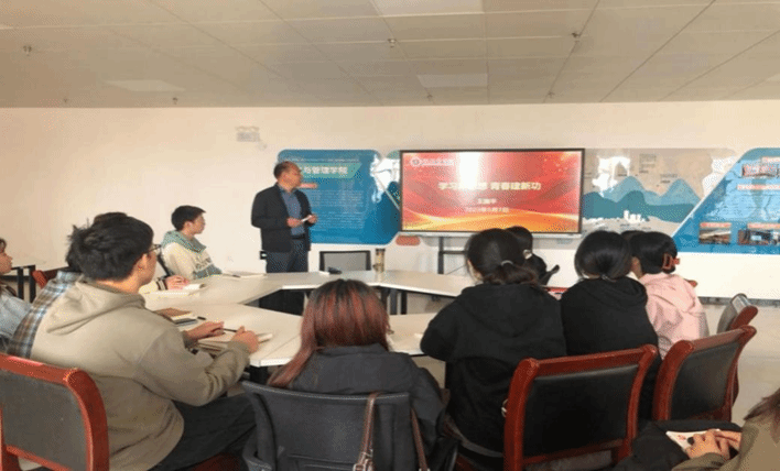 10月25日,学院院长王国平以《学习新思想,青春建新功》为主题讲党课,指出学习贯彻习近平新时代中国特色社会主义思想是激发新时代青年挺膺担当的要求,,强调要以党的创新理论武装头脑、指导实践,努力学好专业知识,练就青春本领,增强大局观念,发挥模范作用,积极弘扬主旋律。