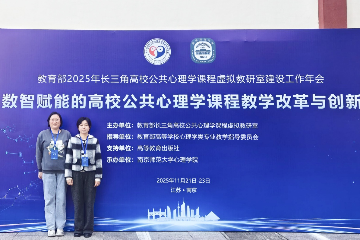 11月22日至23日,2025年教育部长三角高校公共心理学课程虚拟教研室建设工作会在江苏南京召开。此次会议由教育部高等学校心理学类专业教学指导委员会指导举办,汇聚了长三角地区高校公共心理学课程虚拟教研室成员单位师生及全国相关学科课程的同仁。我校kaiyun登录中国入口登录心理学团队参加会议。