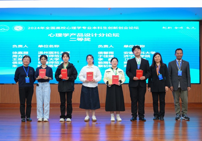 4月30日-5月2日,由教育部高等学校心理学类专业教学指导委员会主办,广西师范大学教育学部承办的“2024年全国高校心理学专业本科生创新创业论坛”在广西师范大学举行。来自北京大学、北京师范大学等全国160所高校440件作品同场竞技,我校两项作品分别获得二等奖和三等奖,获奖数量和质量在省内高校中处于第一方阵。