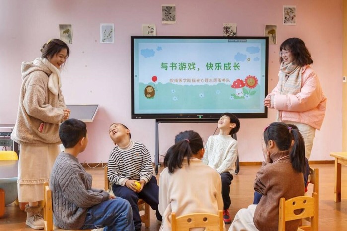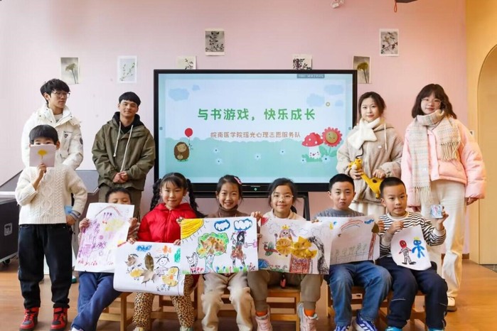 关爱儿童心理健康,促进儿童健康成长。2023年12月3日,皖南医学院kaiyun登录中国入口登录“瑶光”心理服务队联合芜湖市书房开展主题为“与书游戏,快乐成长”的“江湾书院活动”,希望通过一系列趣味活动,让江湾书院的小读者们与书籍进行“联结”,激发他们对阅读和知识的热爱;并希望在活动过程中,提高小读者们与同伴沟通交流的能力、与他人合作的意识,帮助他们发现自我,认识自我;发现爱,学会爱,以促进其心灵健康成长。