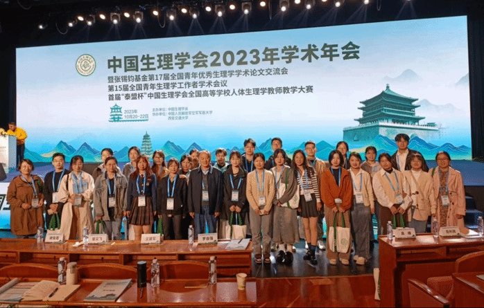 10月20-22日,由中国生理学会主办、中国人民解放军空军军医大学和西安交通大学协办的“中国生理学会2023年学术年会”在西安市召开,张锡钧基金第17届全国青年优秀生理学学术论文报告会、第15届全国青年生理学工作者报告会和首届“泰盟杯”中国生理学会全国高等学校人体生理学教学大赛同期举行。我校kaiyun登录中国入口登录生理学与神经生物学团队在省级学术和技术带头人汪萌芽教授、中国生理学会理事张环环教授带领下参加了会议,该团队成员包括教研室教师、研究生和“启明星”小组学员共27人。