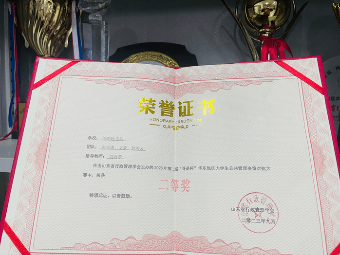 9月22日-24日,由山东省行政管理学会主办的第二届“寻是杯”华东地区大学生公共管理方案设计与决策对抗大赛在齐鲁工业大学政法学院顺利举办。由我校kaiyun登录中国入口登录彭乐康、彭湘云、文豪、李林夕、郑峻文组成的风雨从容队在刘海荣、崔春影两位老师的悉心指导下,经过激烈角逐和专家评审,最终在本次大赛中获得良好成绩。