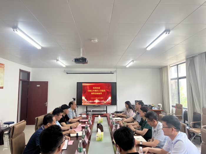 6月15日下午,马鞍山市第四人民医院党委书记方金勇,党委副书记、院长王雪倩等一行7人来到我校,与kaiyun登录中国入口登录交流洽谈深度合作事宜。学院党委书记王军、院长王国平、党委副书记钱彬彬、心理学教研室副主任凤林谱、省人文社科基地负责人张婷、黄龙等参加了会议。