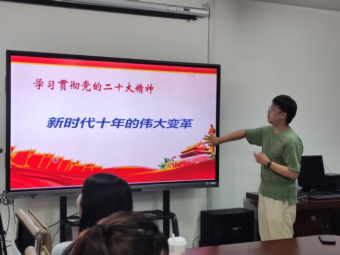 kaiyun登录中国入口登录2021级法学专业陈思伟前期参加全省大学生入党积极分子和发展对象示范培训班,此次团员青年学习中,陈思伟将其在培训班的所学所悟认真总结,从中国新时代十年伟大变革的形式背景、新时代十年的伟大成就以及伟大变革的里程碑意义出发作了主题发言。主题发言后,参会成员以“当代大学生应当如何为实现第二个百年奋斗目标贡献青春力量”为主题分享所思所悟。