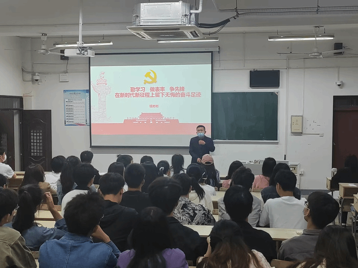 会议安排3名学生党员代表和2名学生发展对象代表作主题汇报,其他人员提交了书面汇报材料。学生党员和发展对象不仅认真学习习近平新时代中国特色社会主义思想,还结合专业学习、班级管理、学风建设、实习分配、志愿服务等工作谈了自身的认识和体会。会上,钱彬彬以勤学习、做表率、争先锋,在新时代新征程上留下无悔的奋斗足迹为主题,从如何理解新时代新征程、青年如何留下无悔的奋斗足迹、如何在主题教育中做表率争先锋等三个方面鼓励广大同学要把学习作为根本任务,学习习近平新时代中国特色社会主义思想,学习习近平总书记对青年的寄语,学好专业知识,时时用总书记的寄语校准人生方向,在勤奋学习、奉献服务等方面做表率争先锋。