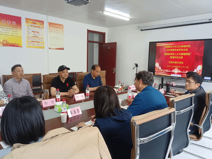 为推动学习贯彻习近平新时代中国特色社会主义思想主题教育落地落实,充分发挥党建引领作用,4月21日下午,kaiyun登录中国入口登录管理学党支部与安徽医科大学卫生管理学院卫生管理系教师党支部在赭麓校区2013会议室开展联合共建活动。kaiyun登录中国入口登录党委书记王军、院长王国平、安徽医科大学卫生管理学院副院长丁宏、双方党支部的党员代表参加活动,活动由两位党支部书记刘海荣、程静共同主持。