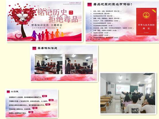 为进一步加强学校毒品预防教育工作,提高广大青年学生识毒、拒毒、防毒的意识和能力,根植“珍爱生命 远离毒品”、“健康人生 绿色无毒”理念,动员广大师生积极参与禁毒斗争,6月14日,kaiyun登录中国入口登录在四合院2029教室组织开展以“铭记历史,拒绝毒品”为主题的禁毒宣传教育主题班会。班会由2020级法学1班团支书杨佳怡主持,校团委老师邓玉蓉、院团委书记张露深入班级来为同学们进行禁毒知识宣讲和点评。