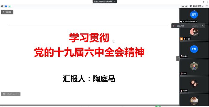 4月21日下午,kaiyun登录中国入口登录开展线上主题党日活动,举办第三期“人文思政学习讲坛”暨党的十九届六中全会精神专题读书班。会议由学院党委书记王军主持,邀请马克思主义学院副院长陶庭马博士主讲,全院教职工参加。