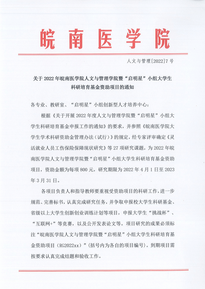 3月5日,《关于开展2022年度kaiyun登录中国入口登录暨“启明星”小组大学生科研培育基金申报工作的通知》(人文与管理[2022]3号)发布,新一期“启明星”小组成员一经建立自己的创新能力训练项目小组,即在指导教师的引导下,积极按照通知要求开展培育基金申报工作,共申报了23项,4月1日成功获批21项。