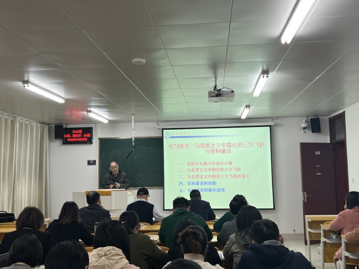 汪萌芽以“马克思主义中国化的三次飞跃与学科建设”为题作党课报告,他从党的十九届六中全会公报、马克思主义中国化的三次飞跃、三次飞跃对于高校学科发展的指导意义三方面,交流了自己的学习心得和体会。特别就四个历史时期、四个伟大成就与马克思主义中国化三次飞跃之间的关系、三次飞跃不断推进马克思主义中国化同中华优秀传统文化相结合的内涵过程等介绍了自己的独到见解和思考。汪萌芽通过对于马克思主义的科学体系性质、三次飞跃继往开来的深度解析,凝练出“理论与实践相促进、知行合一思维、创新性文化传承”等重要特征,特别是根据三次飞跃的根本指导思想,联系我校和人文学院专业学科建设的实际、学科建设的龙头性作用和高校职能的载体属性,提出了三次飞跃指引未来学科建设的发展方向,并结合其生理学与神经生物学的学科建设经历,阐释了有关“生理+心理”的大生命观、“整合生命科学”等创新学术思想及其可预期建设成效。