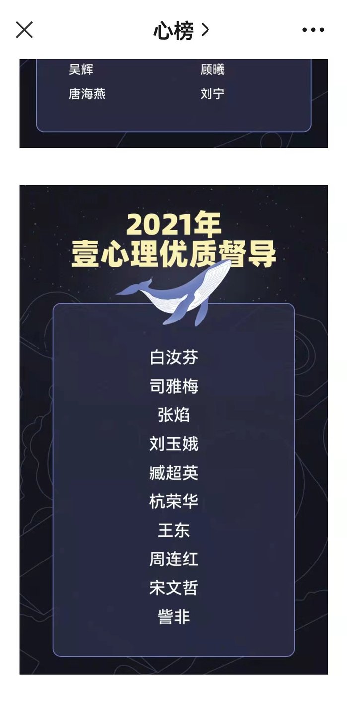 近日,国家级心理学专业平台“壹心理”主办的“迎新年心理行业发展论坛”圆满落幕。本次论坛以“心场景 新未来”为主题,以线上主题演讲、对话的形式展开,邀请行业内外众多领域专家、学者、从业者以及来自教育、医疗、自媒体等相关领域知名人士与会,围绕心理学行业应用场景和从业者职业发展路径探索为主题进行了热烈的讨论,对心理学行业进行了多视角、多领域、深层次的解读与分享,对其未来发展提出了憧憬展望与建设性思路。论坛进行了综合性评选活动,我校kaiyun登录中国入口登录心理学教研室杭荣华教授基于在心理督导工作方面的优异表现,获评“十佳优质督导师”荣誉称号。