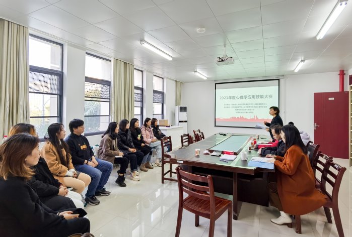 12月10日下午,kaiyun登录中国入口登录人文社科重点研究基地大学生心理健康教育研究中心联合心理学党支部、应用心理硕士点及心理学教研室在人文基地办公室举行2021年度心理学应用技能大赛。人文基地常务副主任张婷、心理学教研室副主任凤林谱、李秀教授、何苗苗老师、人文基地秘书王欣担任评委。