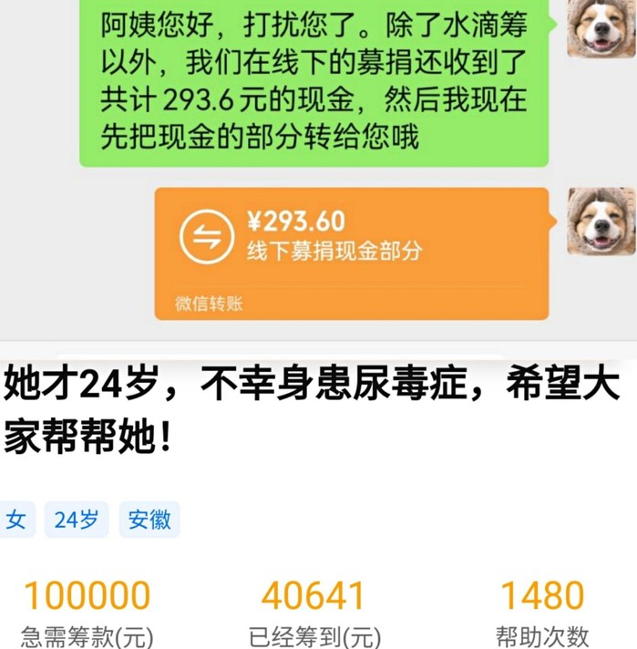涓流积至沧溟水,拳石崇成泰华岑,点滴爱心汇聚成温暖的洪流。截止2021年11月26日,此次活动水滴筹爱心捐助人数达到了1457人,转发次数达到了252次,累计得到1480次帮助,共筹集金额40934.6元。