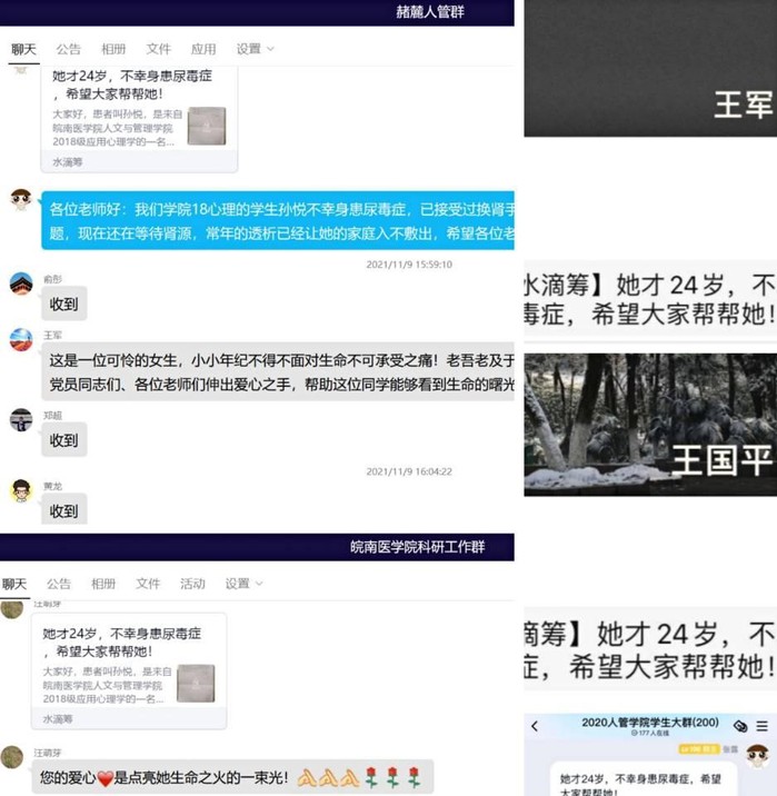 2021年11月,皖南医学院kaiyun登录中国入口登录党委和团委发起线上线下水滴筹爱心募捐活动,为身患尿毒症的2018级心理学专业学生孙悦筹资,助力其与病魔坚强搏斗。