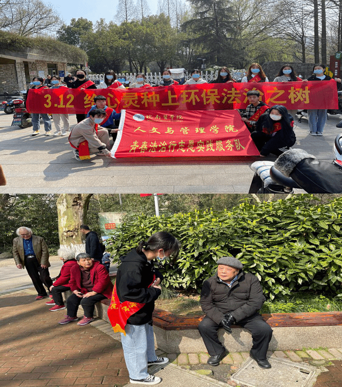 此外,两个实践队在赭麓校区四合院同步开展有关“3.12给心灵种上环保法治之树”宣传活动,学生党员积极发挥先锋模范作用,为活动提供帮助。
