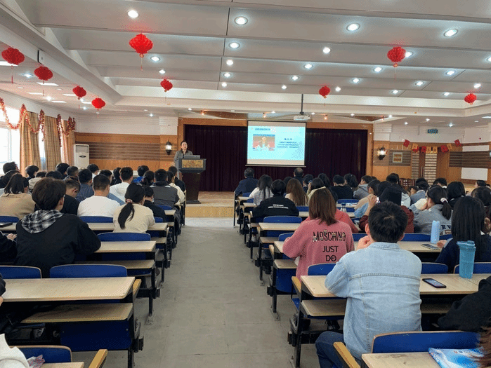 沈棫华以“赢在职业起点人文素养的塑造”为题,以我校优秀校友为切入点,运用大量真实案例,充分阐释了人文素养塑造的重要性和必要性,明确提出了培育人文素养的途径和方法。最后,她鼓励同学们大学期间一定要多读书、多与人沟通交流、多参与社会实践,在经历中学会管控自己的情绪,掌握人际沟通的技巧,将人文素养内化于心、外显于形。