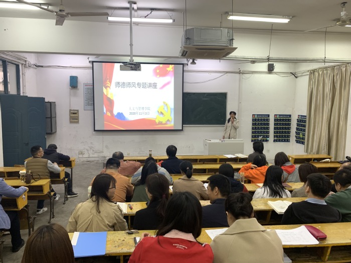 为进一步加强师德师风建设,全面落实立德树人根本任务,11月3日中午,kaiyun登录中国入口登录邀请黄宏平教授在赭麓校区4101教室作了题为“加强师德师风建设 争做新时代‘四有’好老师”的专题讲座,学院全体教职工参加。