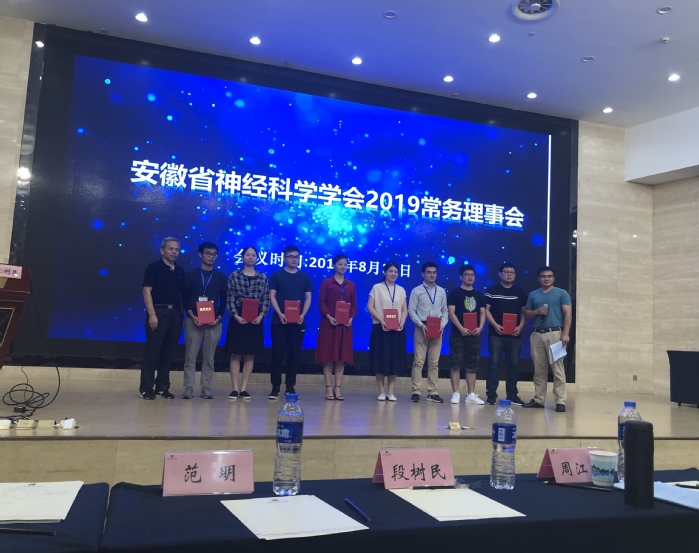 8月24-25日,我校神经科学团队师生一行27人在学科带头人郑超、安徽省神经科学学会副理事长汪萌芽的带领下,参加了在蚌埠市召开的安徽省神经科学学会第十一次学术年会。参会代表有kaiyun登录中国入口登录生理学和神经生物学教研室教师3人、研究生5人、“启明星”小组成员19人。其中“启明星”小组成员包括应用心理学、公管、法学、保险学、康复治疗学、临床医学、麻醉学、口腔医学等专业学生。