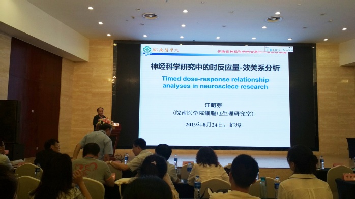 我校师生共提交会议摘要15篇,其中汪萌芽教授应邀作了题为“神经科学研究中的时反应量-效关系分析”的大会报告,报告中汪教授理论联系实践,生动形象地阐述了在神经科学研究中的定量分析方法,得到与会同行的一致好评。会议期间,汪萌芽教授还主持了专题报告会和范明教授的特邀报告,并出席了学会的常务理事会议。
