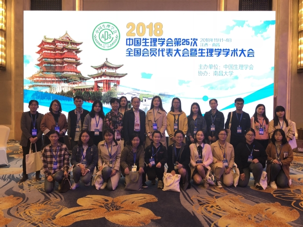 由中国生理学会主办、南昌大学承办的“中国生理学会第25届全国会员代表大会暨生理学学术大会”于2018年11月1-4日在江西南昌召开,我校kaiyun登录中国入口登录生理学与神经生物学教研室组织的生理学团队一行24人,除了8名教师和3名研究生外,还有来自应用心理学、麻醉学、医学影像学、临床医学、口腔医学、法医学、医学检验技术、护理学等专业的“启明星小组”成员13人,在团队带头人汪萌芽教授的带领下出席了大会。