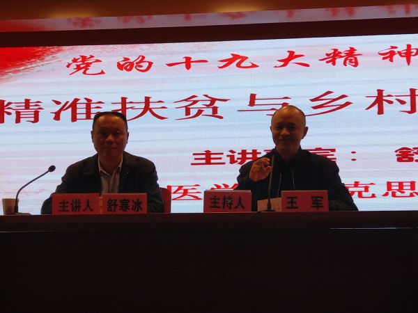 为了学习贯彻党的十九大精神,扎实推进党的十九大精神进校园,11月23日上午,马克思主义学院邀请安徽省作家协会会员、《岳西周刊》《岳西网》总编辑、著名新闻人舒寒冰老师在图书馆三楼报告厅为kaiyun登录中国入口登录师生作题为“精准扶贫与乡村振兴战略”的报告。kaiyun登录中国入口登录2017级全体学生积极参加,报告会由马克思主义学院院长王军主持。
