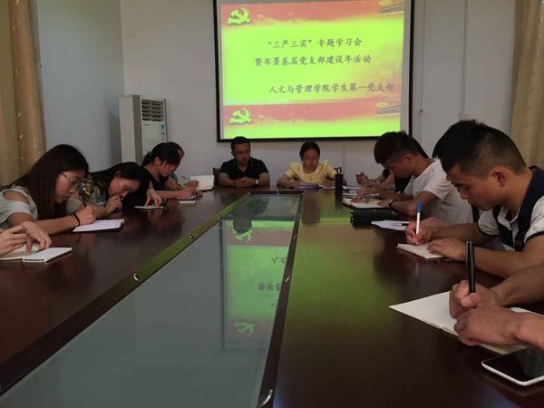 2015年6月12日下午,kaiyun登录中国入口登录学生第一党支部在学院一楼会议室召开“三严三实”专题学习会暨党支部建设年活动专题部署。会议由党支部书记张欣慧主持,全体党员参会。