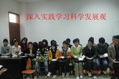 2009年4月8日下午,人文与管理系管理学生党支部开展深入学习科学发展观活动。系副主任党总支副书记刘华同志,支部组织委员06级管理辅导员宋蔼丽老师和07级辅导员刘霖叶老师参加学习活动。