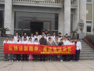 12月4日是法制宣传日。当天上午,人文与管理系08级法学(2)班的同学们在班长魏林峰同学的组织下,到弋江区人民法院开展了一次听庭活动。