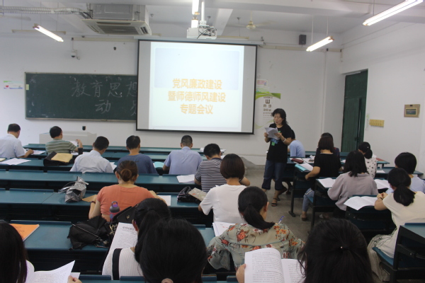会上,窦弘对校纪委的处分进行了通报,带领与会同志学习了《关于重申教育部“六条禁令”和高校教师“红七条”之规定的通知》、《教育部关于建立健全高校师德建设长效机制的意见》、《皖南医学院建立健全师德师风建设长效机制实施办法》、《中共安徽省委教育工委关于省属高校2起违反中央八项规定精神问题的通知》等文件。窦弘指出,每位教师要充分认识自己所承担的庄严而神圣的使命,发扬主人翁精神,自觉捍卫职业尊严,珍惜教师声誉,提升师德境界。她要求,学院各教研室、各教工党支部要将师德师风教育与党的纪律教育、教师业务培训紧密结合起来,深刻领会教育部“六条禁令”和高校教师“红七条”之规定,结合新修订的《中国共产党纪律处分条例》和《皖南医学院建立健全师德师风建设长效机制实施办法》,多形式、经常性的开展师德师风方面的学习研讨、警示教育,以案为鉴,对发现的苗头性、倾向性问题抓早抓小、防微杜渐。