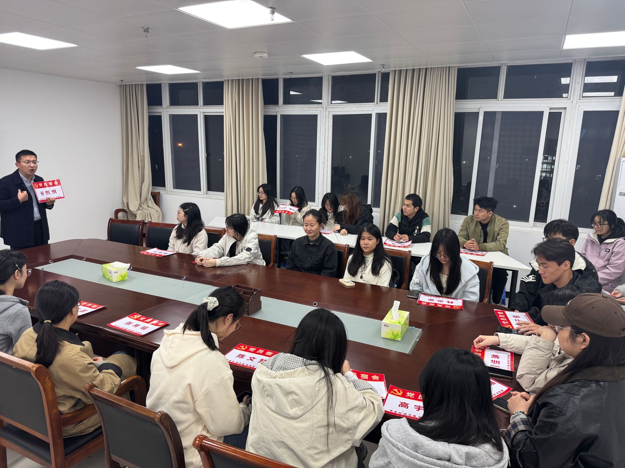 会上还举行“党员宿舍”颁发仪式。钱彬彬授牌时强调,“党员宿舍”既是荣誉标识,更是责任象征,要求学生党员要主动亮身份、争先锋、做表率、讲奉献,在文明宿舍创建、优良学风营造等方面发挥先锋模范作用。