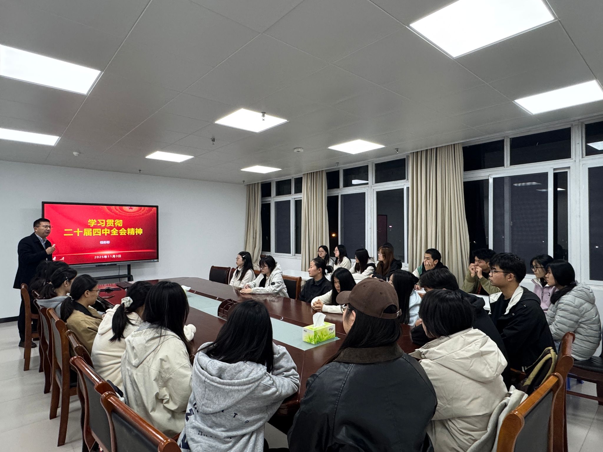 为帮助学生党员深入领会党的二十届四中全会精神,11月3日晚,kaiyun登录中国入口登录在“一站式”学生社区召开学生党员大会集中学习党的二十届四中全会精神,学院党委副书记钱彬彬主持会议,全体学生党员参加会议。