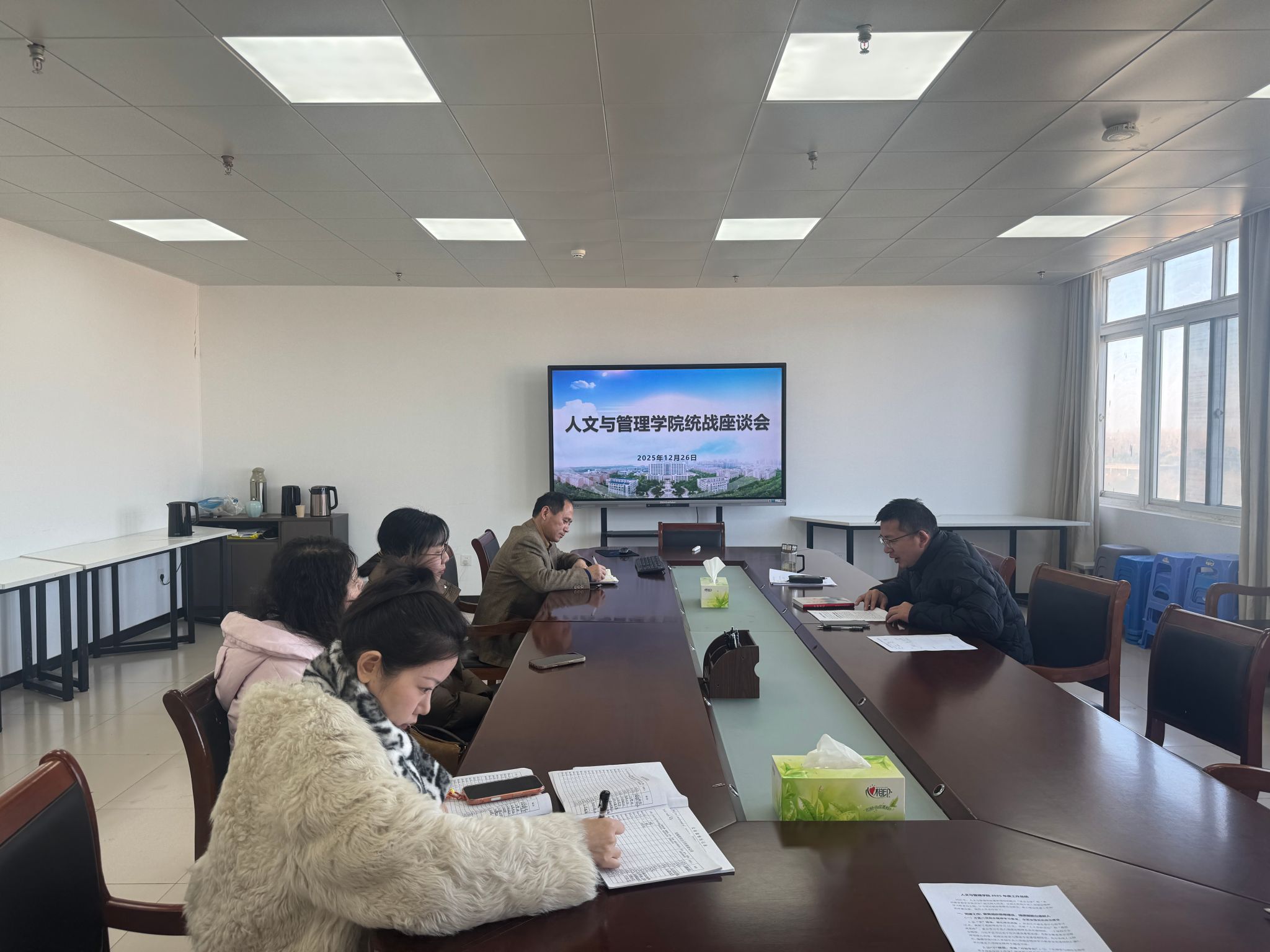 钱彬彬首先代表学院党委通报了2025年学院工作总结,围绕学科建设、人才培养、师资队伍建设等核心工作,梳理阶段性成果,分析机遇与挑战,结合学院实际阐述统战工作意义,指出学院高质量发展需全体教职工齐心,希望党外知识分子发挥专业优势建言献策。与会教师围绕学院总结及发展规划,结合自身工作提出了针对性、建设性建议,展现党外人士责任担当。