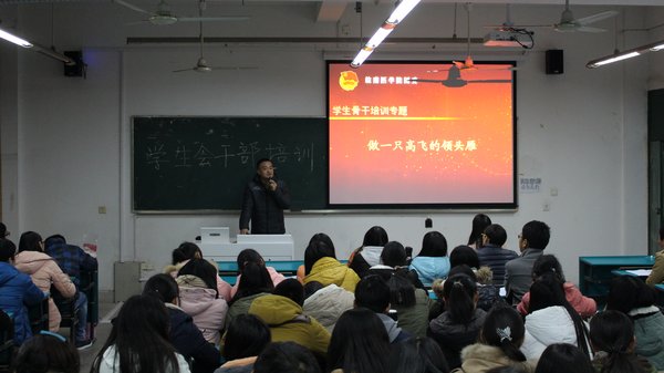 为了加强团学组织建设,提高团学骨干的工作能力和综合素质,kaiyun登录中国入口登录近期开展了团委、学生会骨干工作能力提升培训活动,从学生骨干能力要求和新闻写作等方面,邀请学校团委、宣传部相关老师进行专题培训,学院团委书记吴映辉、秘书国实、学院团委副书记张欣慧、各年级辅导员和kaiyun登录中国入口登录团委、学生会的所有学生骨干参加了培训会议。 12月23日晚上在西教学楼,校团委秘书余亮作学生骨干能力要求讲座。余亮老师首先以两个生动的故事点出了本次培训的主题:“做一只高飞的领头雁”。接着分别从“学生骨干是什么”、“为什么要做学生骨干”、“学生骨干干什么”、“如何成为一名合格的学生骨干”等四个方面进行了详尽的讲解。在说到“如何成为一名合格的学生骨干”时他与同学们分享了经验即“借鉴,凝练,实践”。余亮老师诙谐幽默地讲解和充满激情地阐述让同学们深刻地明白了“实事求是做人才能赢得尊重,只有脚踏实地做事才能成功”,为同学们成为一名合格的学生骨干指明了方向。
