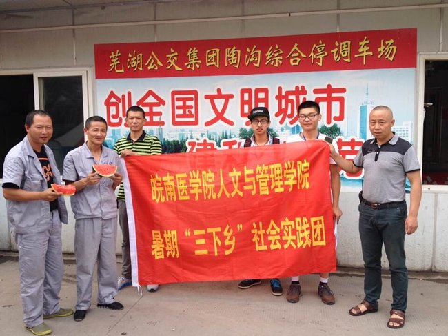 二、前往芜湖市公交站,为司机师傅送清凉 6月27日,“人文风、青春行”暑期“三下乡”社会实践团队前往芜湖市各大公交车站,带上心理降压解暑小贴士,在炎炎的夏日,将丝丝凉意带给辛苦工作的司机师傅们,受到司机师傅的热烈欢迎。