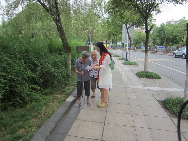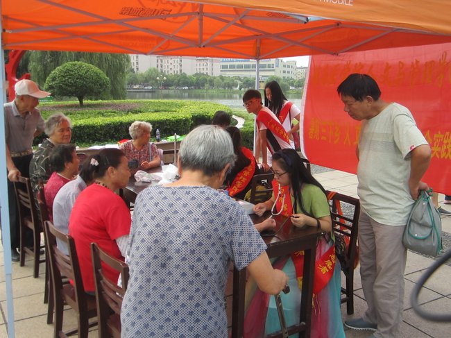 四、来到南瑞社区,为居民送上卫生服务 6月29日,“人文风、青春行”暑期“三下乡”社会实践团队前往芜湖市南瑞社区开展公共卫生服务活动,队员们在社区广场搭建帐篷并在帐篷内进行定点宣传,给社区居民测量血压和宣传防暑解暑的知识,炎炎烈日阻挡不了人管学院学子深入基层、服务群众的热情,在队员们的积极参与和努力下赢得了社区群众的一致好评。
