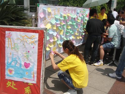 活动中同学们可以把自己想对母亲说的话以便利贴的方式公布在展板上,也可以给自己的母亲写信,将自己想说的悄悄话以信件的方式寄出。很多同学都积极参加了本次活动,现场气氛温馨、热烈。