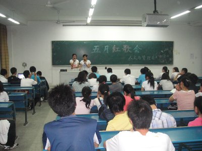 5月25日晚,人文与管理系团委学生会在西503教室举办“五月红歌会”,活动由学生会干部担任评委。系团委副书记吴映辉老师现场指导。