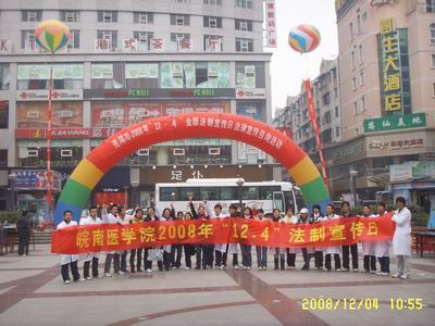 12月4日是全国法制宣传日。该日上午,人文与管理系法学(1)班全体同学在系学生会副主席崔云龙和班长陶军军的带领下在市中心和平广场开展了一次普法宣传活动。系团总支书记吴映辉老师也到现场作指导。