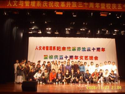 11月27日晚7时,人文与管理系在大学生活动中心隆重举行了纪念改革开放三十周年暨校庆五十周年大型文艺晚会。