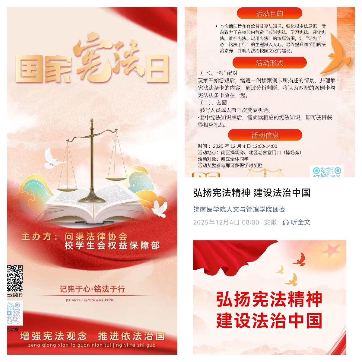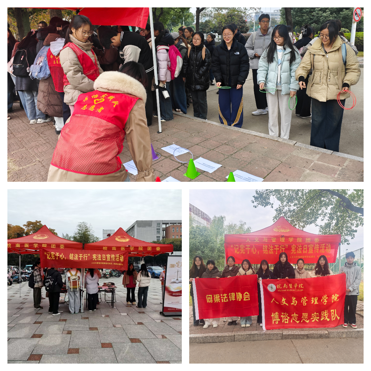 12月4日,问渠法律协会联合校学生会、kaiyun登录中国入口登录学生会共同举办“案例与法条配对”“宪法知识套圈”趣味活动,突破传统普法的单向灌输模式,激发同学们对宪法的学习兴趣,引导广大师生在亲身参与中直观理解宪法作为国家根本大法的地位、作用以及对公民基本权利与义务的规定,在校园内营造“尊崇宪法、学习宪法、遵守宪法、维护宪法、运用宪法”的浓厚氛围。