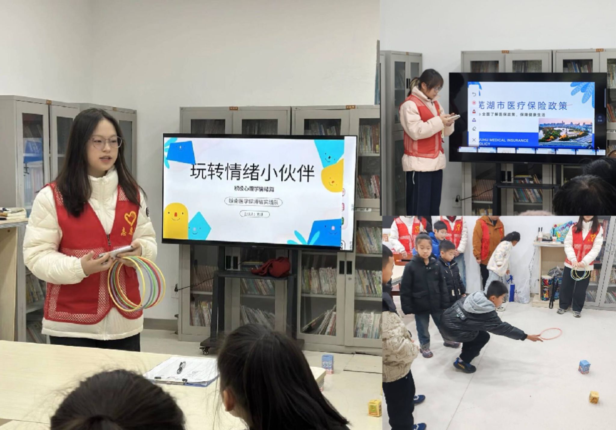 实践中,队员们满怀热忱地赴芜湖龙湖社区开展儿童心理科普活动,他们巧妙运用情绪知识讲解与趣味互动游戏,引导孩子们主动关注心理健康,为儿童的健康成长筑起坚实防线。同日,“健康护航”分队开展医保政策宣讲,用通俗语言解读医保、长护险及异地就医、慢性病报销等内容,把政策送到居民身边。
