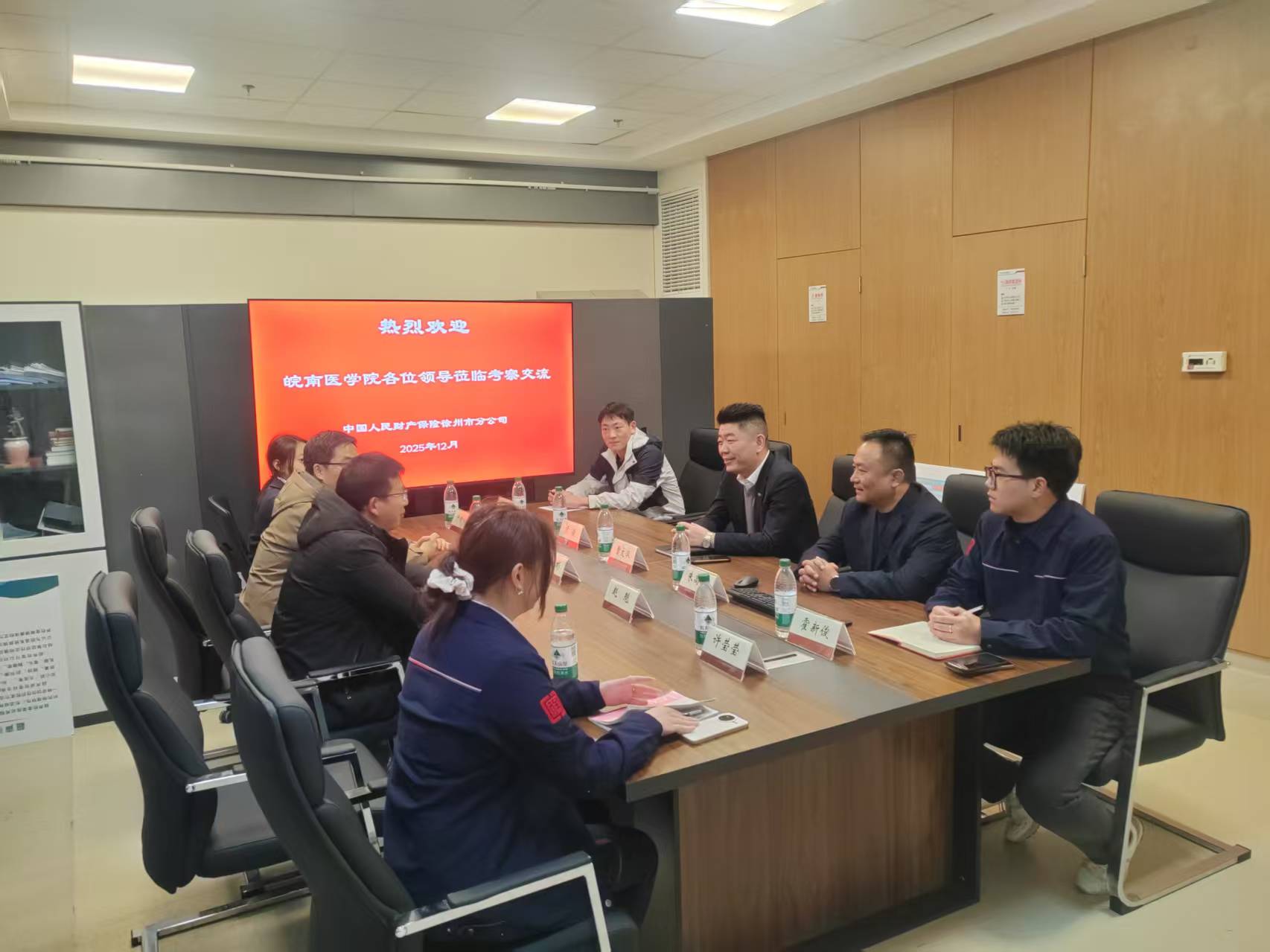 中国人民财产保险股份有限公司徐州市分公司副总经理曹文汉接待了钱彬彬一行,双方进行了座谈交流。钱彬彬介绍了学校及学院的基本情况,重点阐述了学院医疗保险等专业的办学特色、培养方法以及学生的主流毕业去向,希望双方在学生实习就业方面加强合作交流。徐州人保副总经理曹文汉介绍了公司的发展情况,重点介绍了公司人伤理赔人才队伍建设情况,期待与学校加强沟通,深化合作,共谋发展。