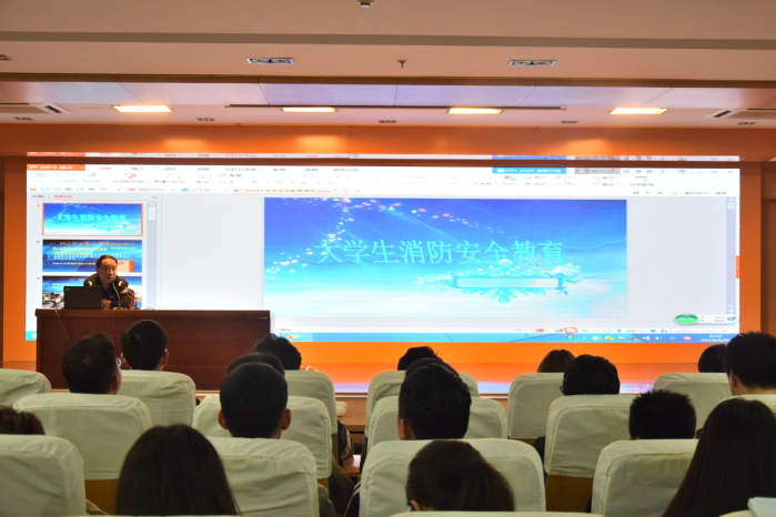 讲座一开始,卢举纲老师为大家播放了一段台州市足浴店失火视频,以惨重的死伤人数为在场师生敲响消防安全的警钟,随后通过“宿舍违规用电的危害”、“高校火灾案例”、“常见消防器材与使用方法”以及“消防逃生18式”等数个教育专题为同学们进行了消防安全知识教育,明确了灭火步骤、逃生方法、疏散路线等具体要求。卢老师的讲解深入浅出,使同学们在较短时间内有效掌握了在火场环境下迅速逃生、自救、互救的基本方法,切实提高抵御和应对紧急突发事件的能力。同时卢老师还表示,未来学校将会引进一批实践型灭火器材,让同学们能够现场操作,增强实践能力,真正实现消防器材的熟练掌握。